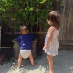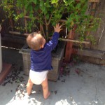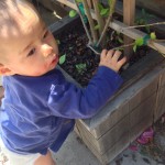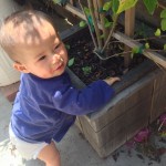 Sawyer is helping clean out all the leaves from inside the planter box. He stayed there for about 15 minutes before I had to go get him because we had to leave.